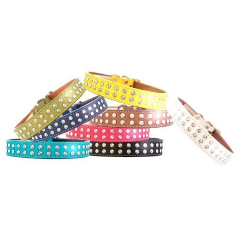 2 Row Crystallized Tuscan Dog Collars & Matching Leash – More Colors