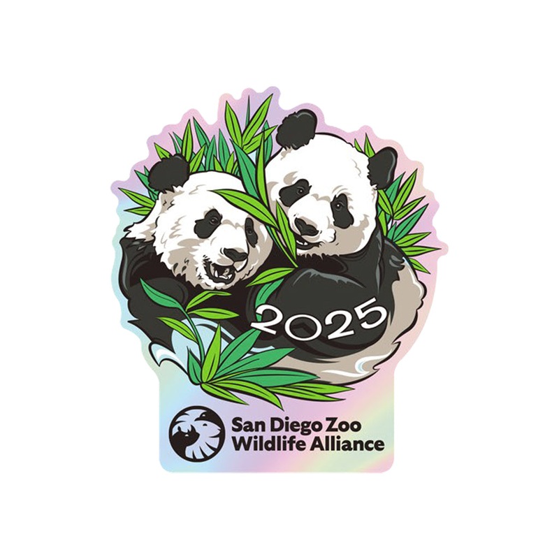 Add a little shine to your collection! This metallic sticker showcases our giant panda duo, Yun Chuan and Xin Bao, surrounded by vibrant bamboo. Printed with a reflective finish that catches the light, its durable, eye-catching, and ready to decorate laptops, water bottles, cars, and more! A fun way to celebrate wildlife while bringing panda charm to your everyday essentials. This metallic sticker is waterproof and 100% UV resistant to outlast the elements.