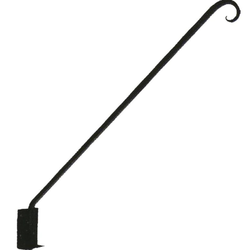 Hanger has a heavy duty wall mount and is 22 inch in length, with 7/16 inch stock.Has a downturned hook and comes with a black powder coat finish.
