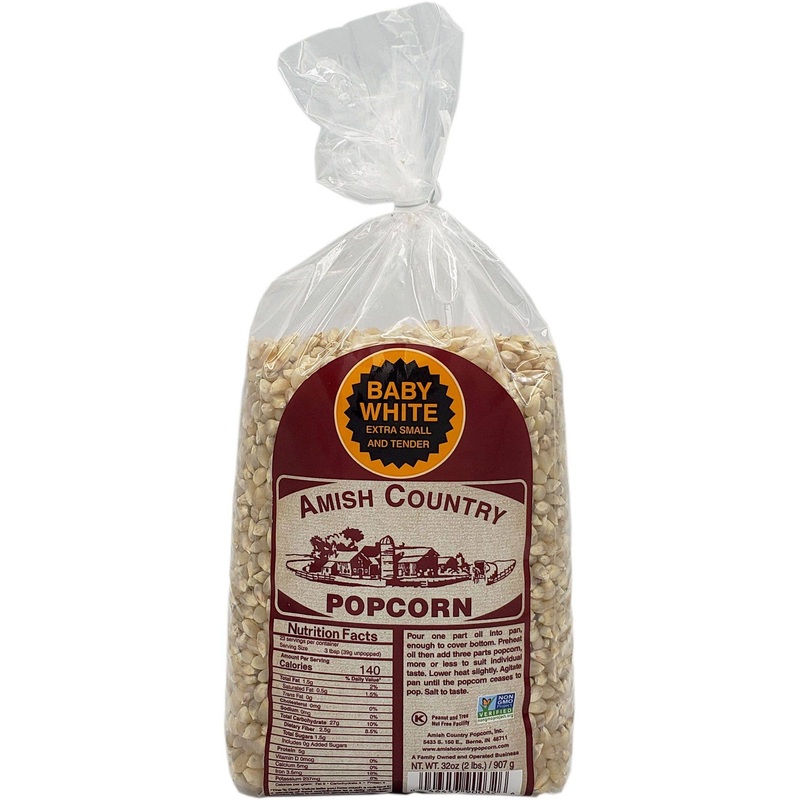 8 2 pound bags of baby white popcorn - Our most tender variety of popcorn yet! Baby White popcorn is a top-seller, and for good reason! Not only is it small and tender, but its hulless as well! See what all the hype is about and try a bag today!