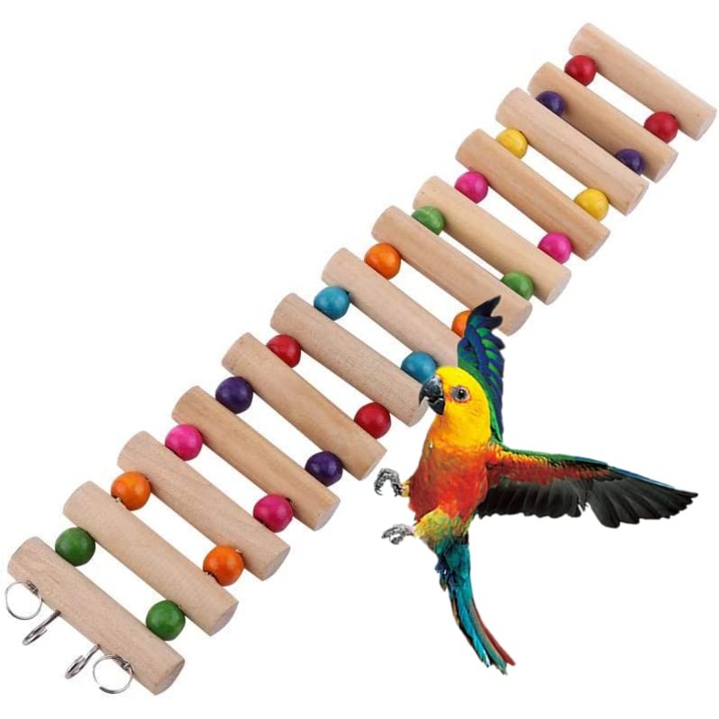 3 Sizes Pet Hanging Wooden Ladder Hamster Stairs Suspension Bridge Swing Cage Decoration Toy for Bird Hamster Rodent(L)