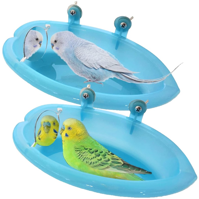 3E Pet Bird Baths with Mirror, Parrot Birdbath Shower Accessories, Parrot Bathroom Bathtub with Mirror, Bird Bath for Small Parrots, Parakeets and Canaries (2 pc) 2 pc blue