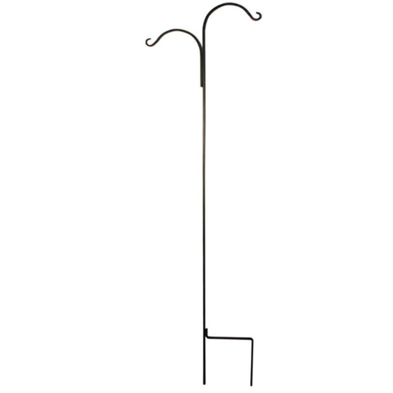 1/2 inch solid square steel base for stability in the groundComes with two hooks that turn up and is ideal for hanging a bird feeder or hanging plant