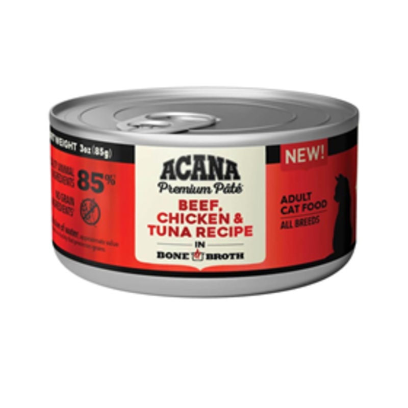 ACANA Premium Pt Beef, Chicken & Tuna Recipe in Bone Broth Cat Food 3 oz.
