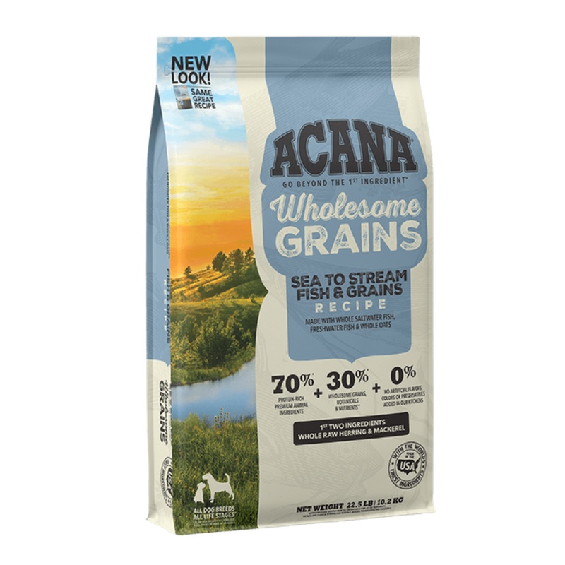 E40302687ACANA + Wholesome Grains Sea to Stream Fish & Grains Recipes Dry Dog Food