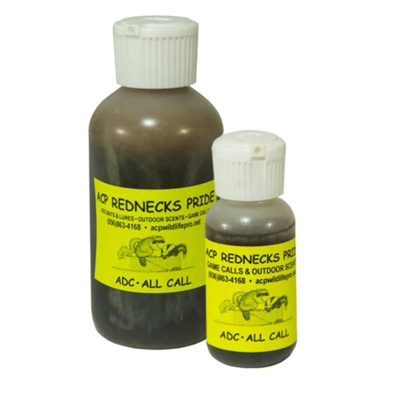 ACP Redneck's Pride (Ron Jones) All Call is a GREAT lure for coons, coyotes and fox, and to our surprise bobcats ! Use in dirt holes, flat sets and cubbies....and the back of cages for coons. Make them work for it !Brand:ACP Rednecks PrideTarget Pests:Bobc