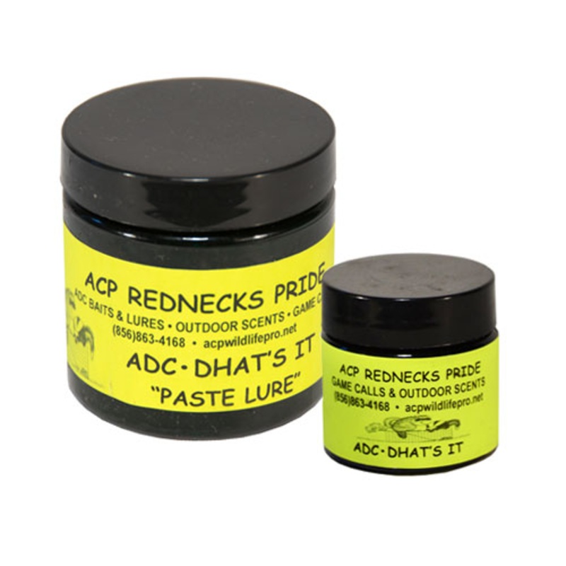 ACP Redneck's Pride (Ron Jones) Dhat's It is a paste lure that was made for groundhogs originally but since that time we have found squirrels, skunks, raccoons an opossum are extremely attracted to this lure. Gray Fox will come to this lure also in the ear