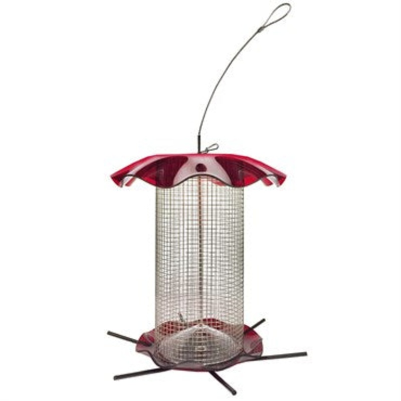 Acrylic Seed Feeder, Red, 3qt Capacity – 12in Diam x 11in H