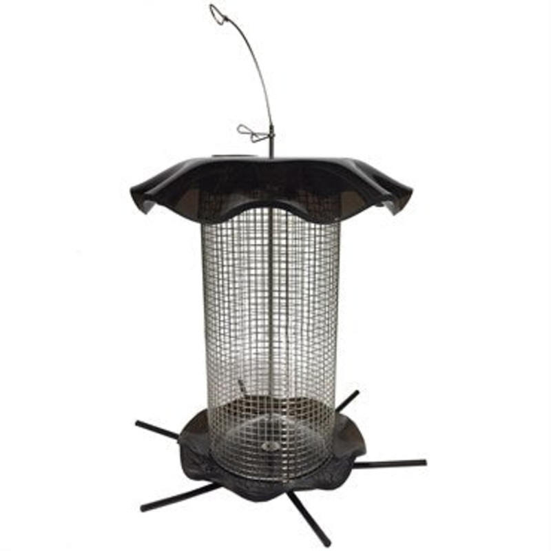 Features stainless steel screens with molded durable acrylic top and bottom. Center seed diverter and drainage holes keeps seeds fresh and where you want them. Made in the USA. Designed with hanging cables which makes them easy to fill and easy to clean. 3