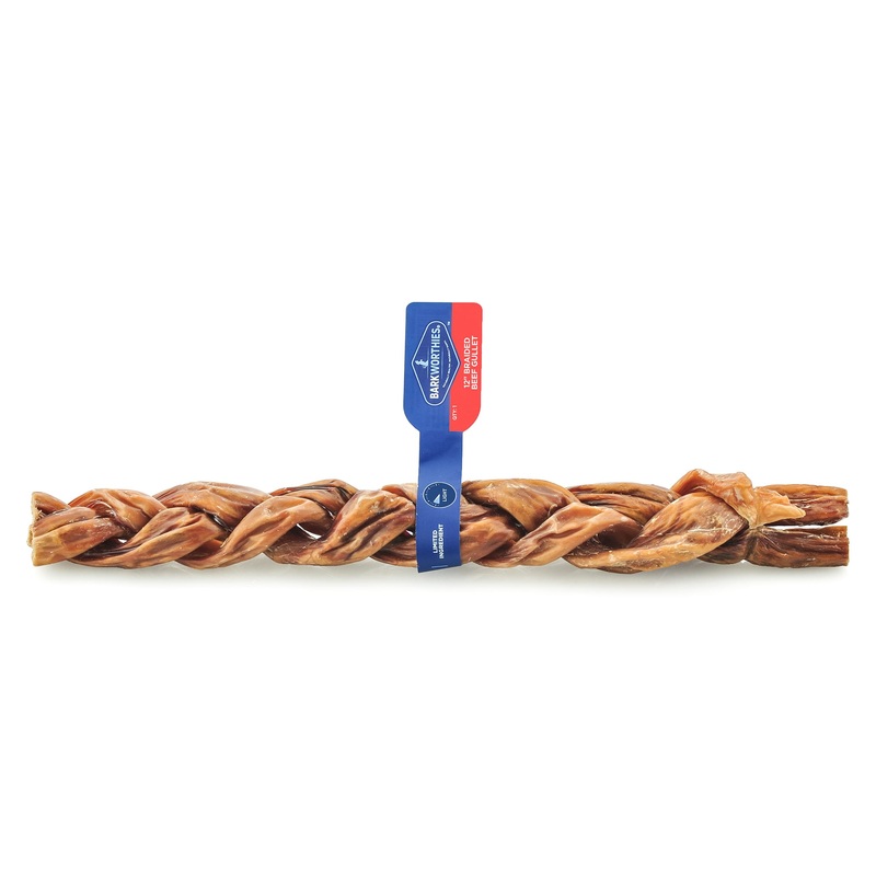 Barkworthies Braided Beef Gullet, 12:Barkworthies Braided Beef Gullet is a made from 3 braided beef sticks that taste great and last long for even the most aggressive chewersThese beef gullets are rough in texture to help scrape plaque and tartar off of your pet’s teeth while chewing and also act as a natural source of protein and glucosamine to support muscle and joint healthBarkworthies Braided Beef Gullet is fully digestible and free of preservatives