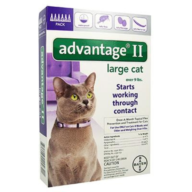 Advantage II is a monthly topical comprehensive flea prevention and treatment for cats over 5 pounds that kills fleas through contact, so they dont have to bite to die.