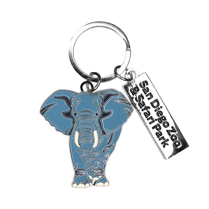 Our African elephant keychain is bold and beautiful! Features a large African bull elephant in a shiny enameled finish. The one-inch ring holds lots of keys and it includes a separate metal charm with San Diego Zoo & Safari Park too.FEATURESOur African ele