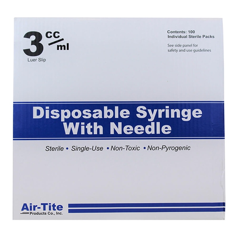 Air-Tite Luer Slip Syringes/Needles, 100 ctAir-Tite Luer Slip Syringes and Needles offer top-quality, sterile, non-toxic, and non-pyrogenic materials. Each syringe is paired with a mounted needle, packaged individually for convenience, and designed for sin