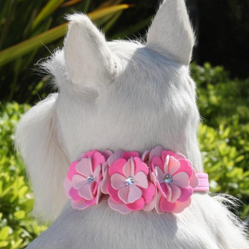 AlexandraFlowersDog Collar & optional Leash This Flower dog collar is a real show stopper, even - your pup is bound to know they are pampered! Made only for teacup and toy breeds. The Flowers are handcrafted giving it an attention grabbing 3-dimensional qu