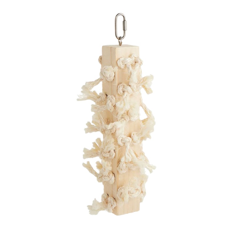 Includes: 1 Preening Bird ToyIntended Pet(s): Medium/Large BirdsColor: TanDimensions: 10.5 in H (36.8 cm)Advice for Use: Always select the appropriate size and type of item for your specific bird. Be sure to observe your bird’s behavior with a new item. Remove and replace the toy if it becomes damaged. To encourage activity, swap out your bird’s toys for different ones every few weeks.