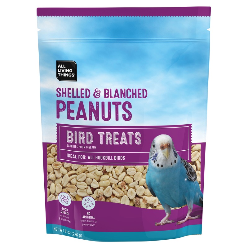 All Living Things Shelled and Blanched Peanuts are a good source of protein and fat, making them a healthy snack for birds. Shells and skin are removed for easy and nutritious, mess-free snacking. Only at PetSmart.