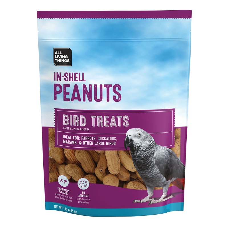 DESCRIPTION All Living Things Whole In-Shell Peanut treats are a high quality, protein-rich treat or reward for all medium to large birds. Treat your bird to a snack he'll love each and every time with these delicious whole peanuts. Only at PetSmart.Key Be