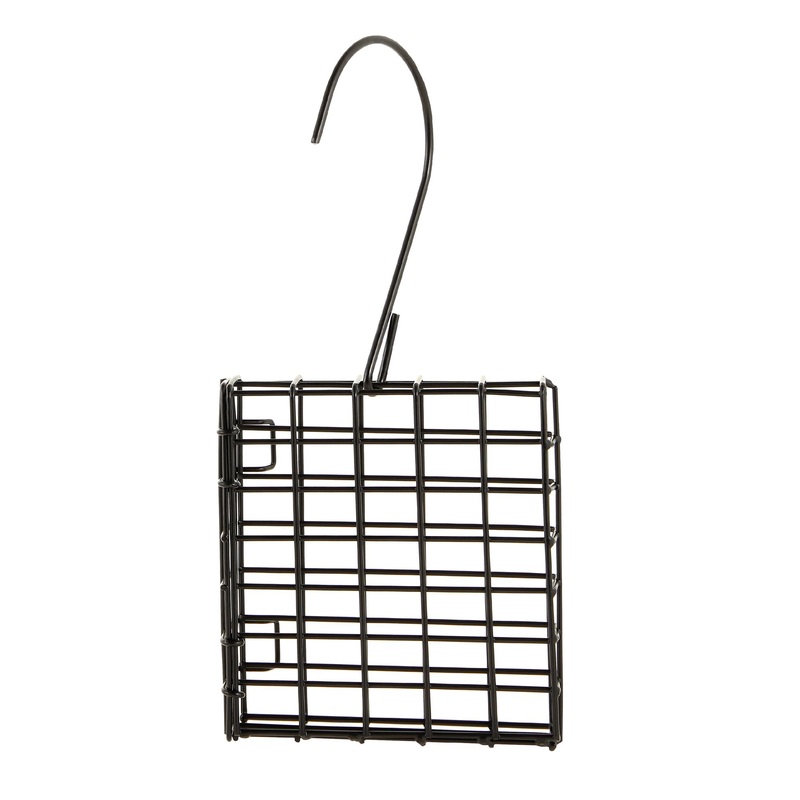 Includes: 1 Suet Feeder CageIntended Pet(s): Wild BirdsMaterial(s): SteelColor: BlackProduct Dimensions: 5 in x 4.5 inAdvice for Use: Make sure to clean feeder often with a mild, gentle soap. Always select the appropriate size and type of item for your specific needs. Be sure to observe your bird’s behavior with a new item. Remove and replace the item if it becomes damaged.
