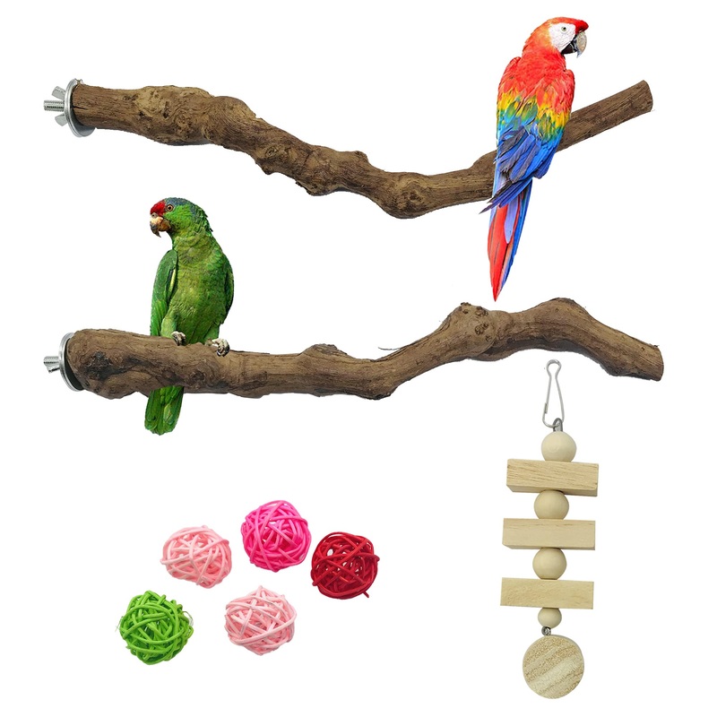 Allazon 4 pieces of birds natural wood seat rods natural grape stick Belt rods for birds birds toys bird parrot swing toys (styel 3) style 3