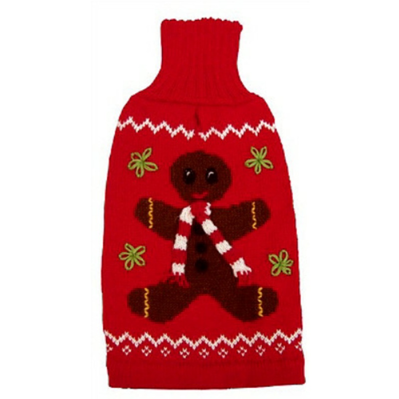 Gingerbread Man soft and snuggly alpaca dog sweater for small dogs. So much cuter than pictured! Turtleneck mid-weight sweater includes a harness hole for leash attachment. Lots of stretch for easy on and easy off. 3 dimensional scarf, black buttons and eyes. Cute Christmas puppy dog sweater is perfect for those Holiday photos!