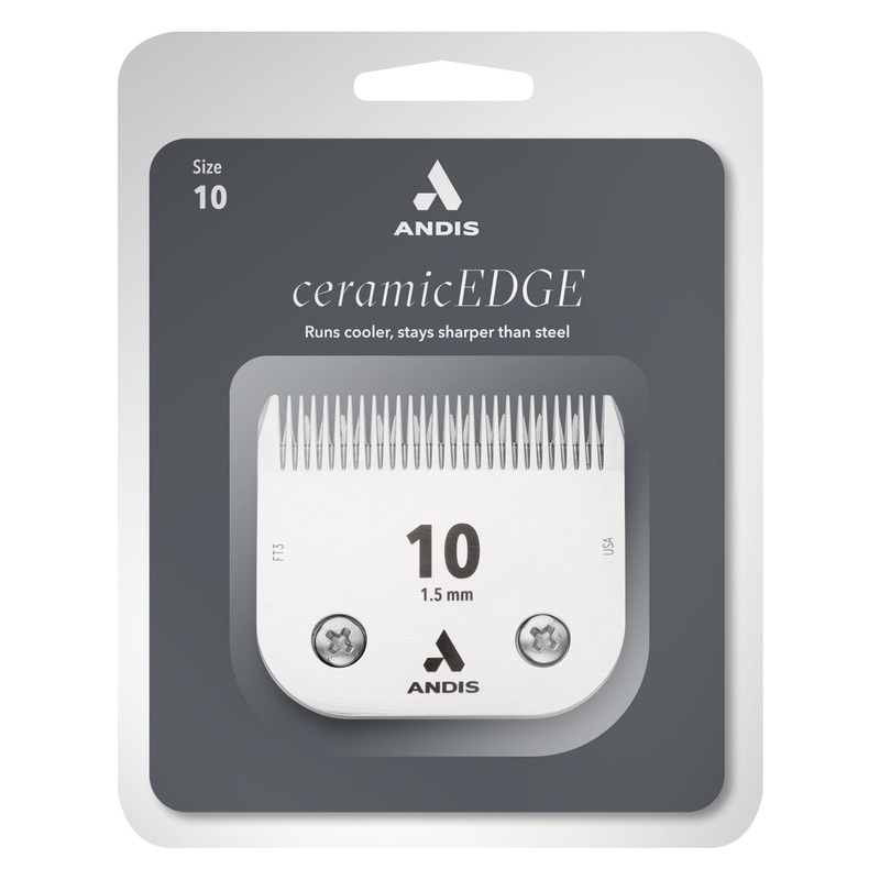 The freshest tools for the sharpest cuts. The CeramicEdge Detachable Blade, engineered from carbonized steel. This razor-sharp blade effortlessly glides through hair, leaving behind precise .5mm cuts. Enhanced with advanced ceramic technology, CeramicEdge stays cooler longer than metal blades, so you can carve your way through close coifs and detailed work. Sculpt Sammy and Sargent week after week with pristine chrome finishing that resists rust and corrosion. Fits a wide variety of Andis clippers. Enjoy the thrilling possibilities with a fresh CeramicEdge Detachable Blade. CeramicEdge Detachable Blade, Size 10