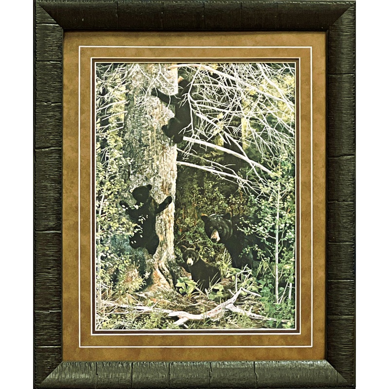 Andrew Kiss ‘Family Gathering’ Black Bear Wildlife Art Print, Double Matted, Oak Frame, 15 x 19 inches