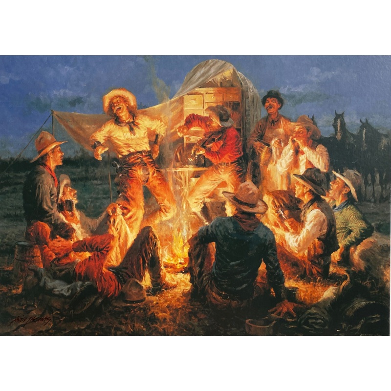 Be the first to review “Andy Thomas Cowboy Jig Signed Campfire Singing Art Print (Paper 17 x 13 Image 15 x 11)”