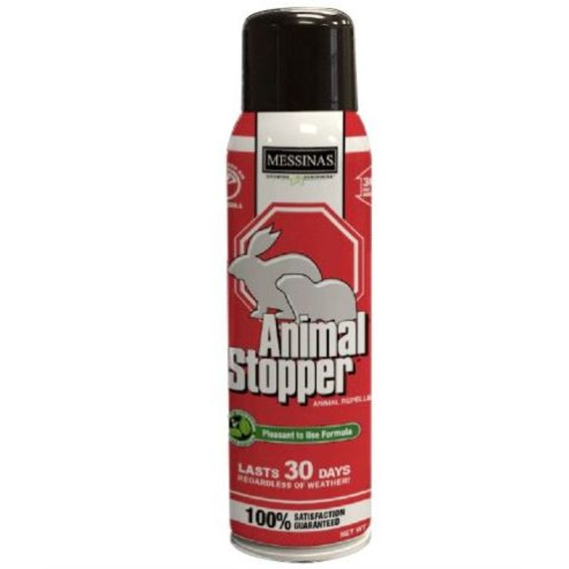 Messinas Animal Stopper Pressurized Spray can be used to discourage groundhogs, skunks, rabbits, raccoons and other common pests from devastating gardens, flowerbeds and sheds. With an abundant food supply and protection from the elements, low-level herbiv