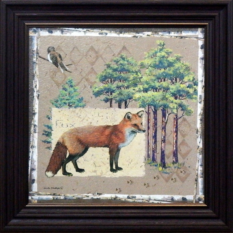 This fox picture is another great print from Nature and wildlife artist Anita Phillips. The red fox is legendary for its intelligence and cunning. This framed print comeswith a textured finish giving it the look and feel of a canvas. It is easy to care for, light and easy to hang with the attached wire hanger on the back. The outside framed size is 15.5″ x 15.5″.