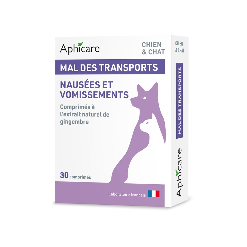 Aphicare – Motion Sickness – Food Supplement for Dogs and Cats – 30 tablets – Natural Ginger Extract – Made in France