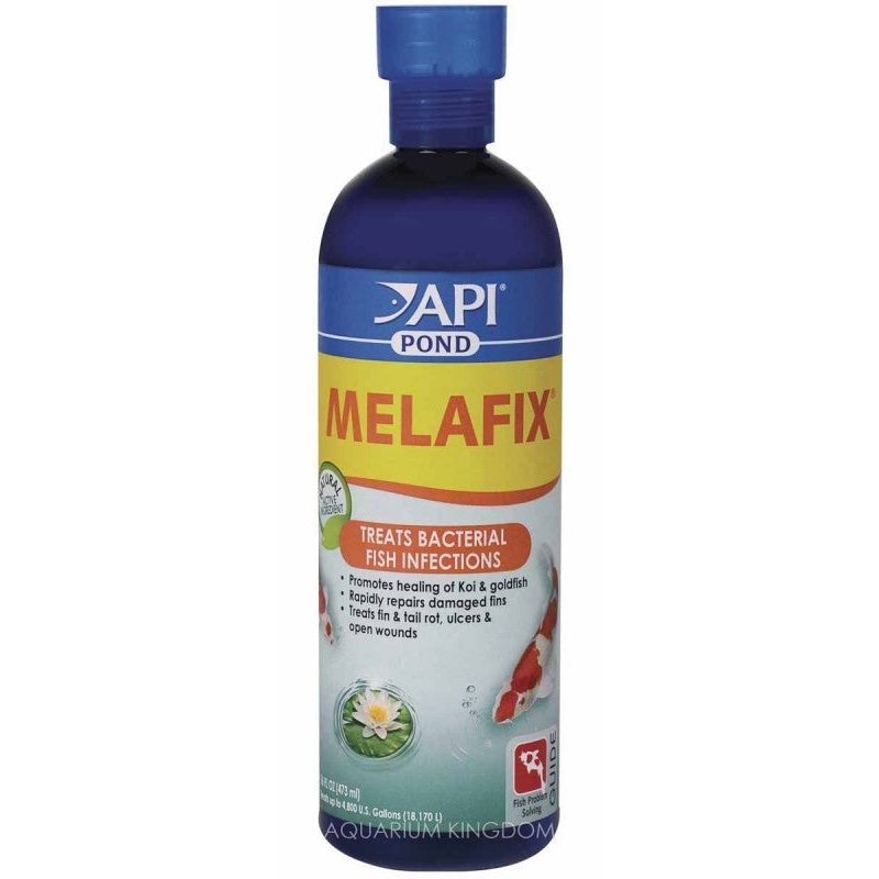 PRODUCT SUMMARY:API Pond Melafix acts as an all-natural, antibacterial remedy for koi and goldfish diseases, including eye cloud, mouth fungus, fin & tail rot, damaged fins, ulcers, and open wounds. Use if you notice these symptoms among fish in your pond,