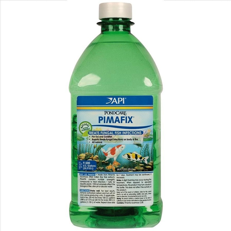 API Pondcare Pond Pimafix 1.89l rapidly treats fungus or cottony growth, mouth and body fungus and reddening of the fins and body.