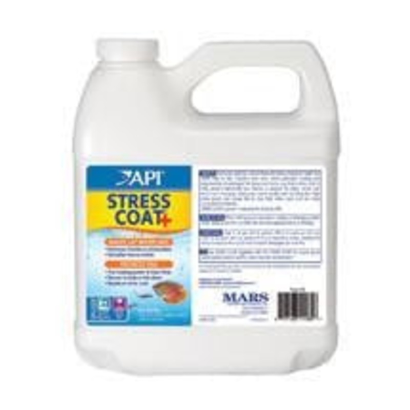 PRODUCT SUMMARY:API Stress Coat makes tap water safe for fish by removing harmful chemicals from tap water, and contains the healing power of Aloe Vera to reduce fish stress by 40% and to heal damaged tissue and wounds. API Stress Coat also reduces electro