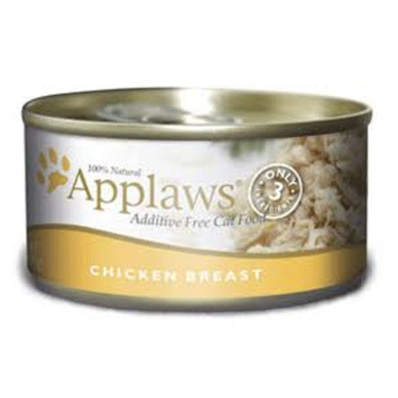 Applaws Chicken Breast Canned Cat Food contains nothing more than the ingredients listed and is a natural complementary pet food for adult cats.