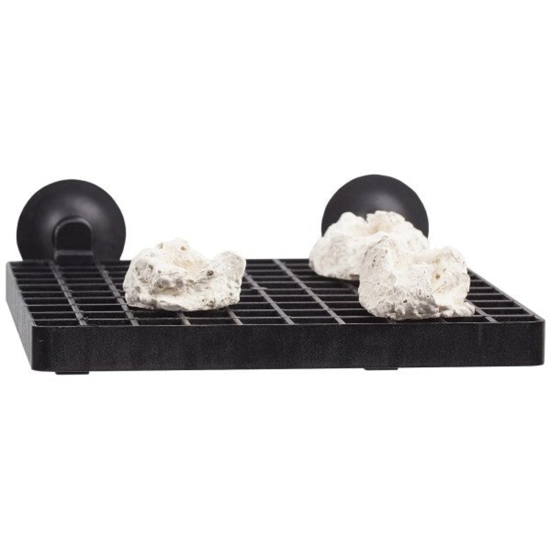 Retaining plate for holding several coral pins. By using the supplied suction cups, the retaining plate can be placed anywhere on the inner side of the aquarium. Thereby, the frags can be put in an optimal position for illumination. Thus, optimal growth of the frags can be significantly stimulated. Supplied with: frag board app. 15 x 15 cm, 2x holder incl. suction cup, 10x coral pins.