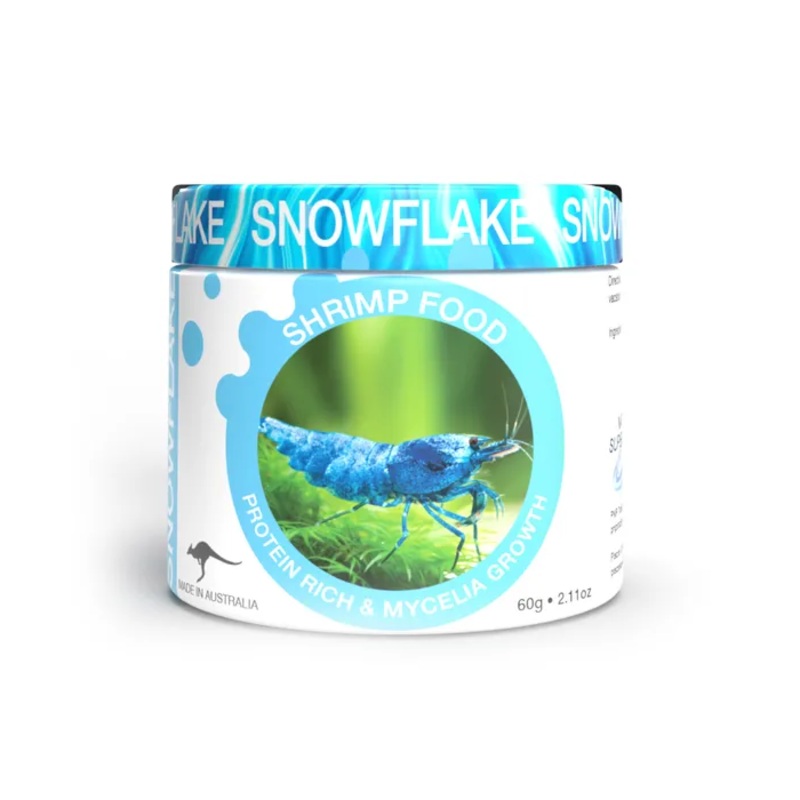 SHRIMP FOOD SNOWFLAKE 60GFreshwater shrimp need variety in their food and like to graze constantly. Use our full range of natural shrimp foods daily which when used together offer a complete and varied diet.ALL Natural specialist SHRIMP foods HANDMADE & PR