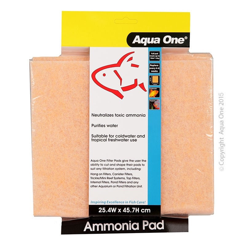 Aqua One Ammonia Pad Self Cut Filter Pad 25.4 X 45.7cm (10459)Aqua One Filter Pads work alongside your current filtration set up to help remove unwanted particles and debris before it recirculates throughout your aquarium.Aqua One Filter pads are able to b