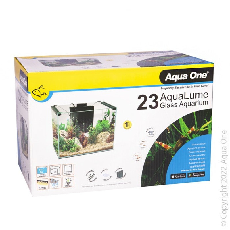 Aqua One AquaLume Glass Aquarium is the perfect aquarium for any home or office. Showcasing a frameless design with low iron opti-clear glass for flawless viewing and space-saving LED lights to enhance the colours of your aquatic dcor and aquarium inhabita
