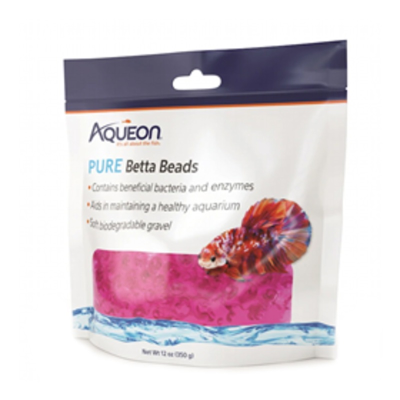 Aqueon PURE Betta Beads contain beneficial bacteria that help maintain a healthy environment in unfiltered aquariums. The beneficial bacteria aids in maintaining a balanced environment while the enzymes help breakdown organic sludge for better water clarit