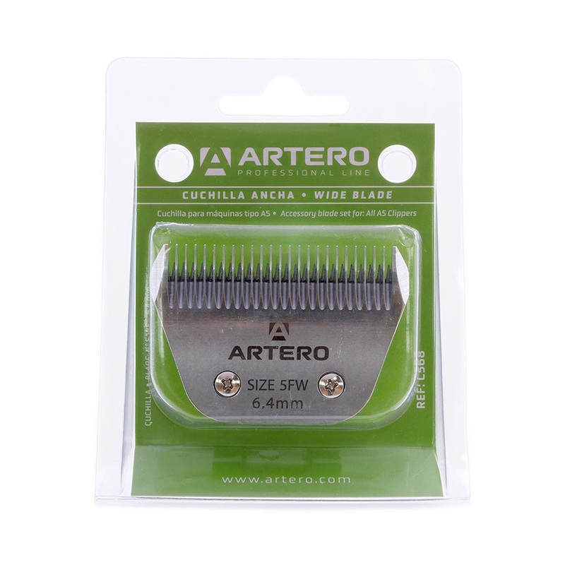 Wide blades for use with all A5 clippers. 0.4" wider cut resulting in a quicker finished groom. Can be sharpened. 5 different sizes. 10W & 30W compatible with wide combs up to 1.5" Cutting height: 0.25" (6.4mm) Blade number: 5WF Material: Steel.