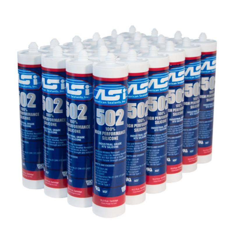 ASI 502 High Performance 100% Silicone Sealant Adhesive is a one-part, moisture- curing RTV (room temperature vulcanizing) silicone that cures to a strong, silicone rubber that maintains long-term durability and flexibility. ASI 502 contains no solvents or isocyanates which makes it VOC compliant. Due to the formulation, ASI has received numerous accolades for its tensile strength, adhesion, and overall performance.