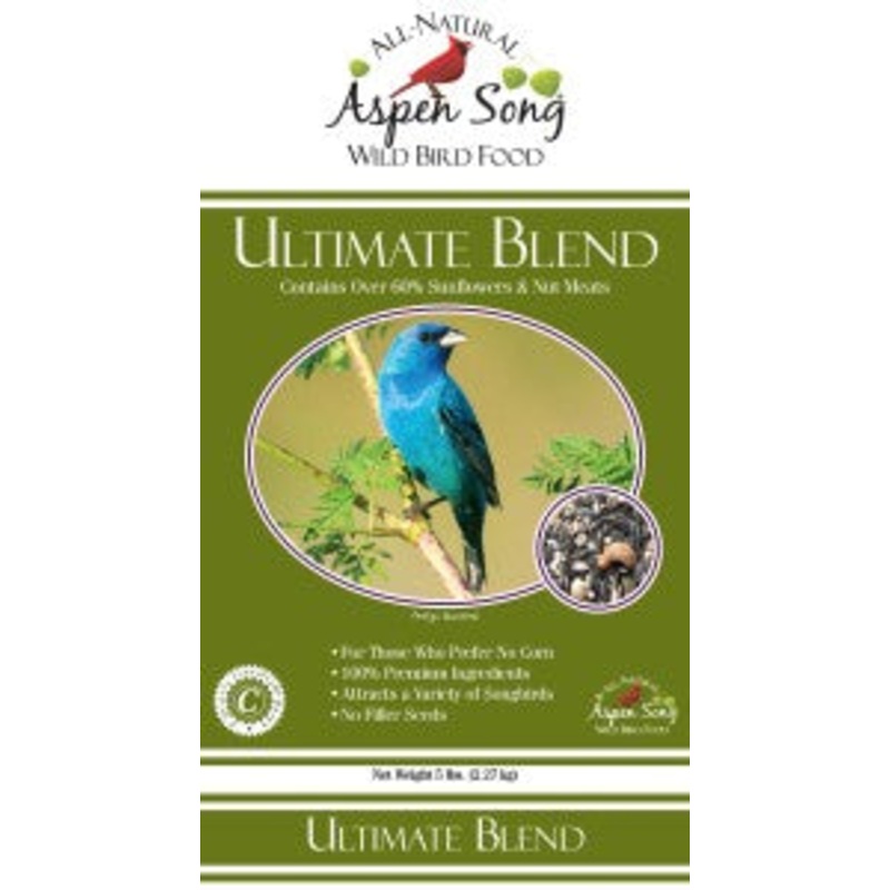 Aspen SongUltimate Blend is a rich mixture of the preferred seeds of backyard birds. It contains over 45% sunflower products and over 15% nut products. Ultimate Blend is formulated to attract the favorite feeder visitors and will keep them coming back for more.