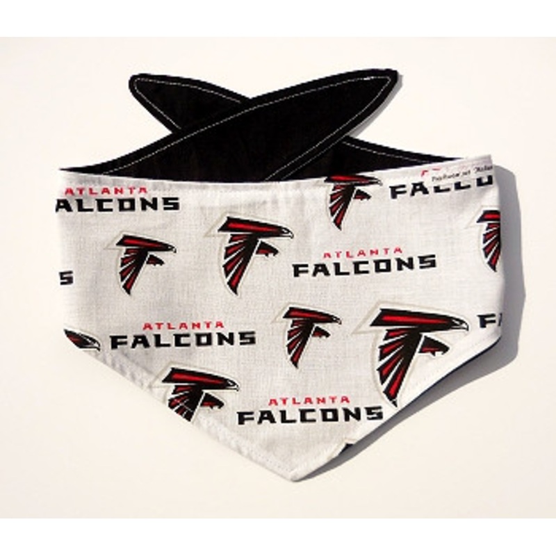 Atlanta FalconsNFL Dog Bandana ScarfsBARK FOR YOUR TEAM!! Handmade cotton NFL team bandanas. The reverse fabric is a solid cotton fabric. Makes a great gift for any dog owner. Wear alone or with the teams jersey. This bandana is cut with a curve so it fits