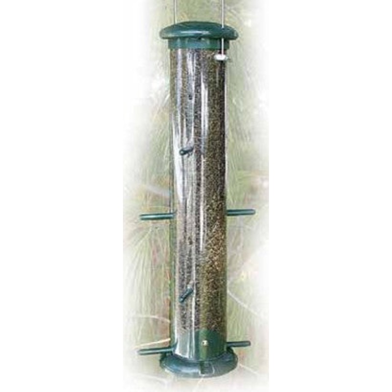 These green plastic tube feeders come fully assembled and ready to hang. Easy to fill and clean. Two options available to hold thistle or mixed seed. Capacity: 2 lbs.8 feeding portsPorts are continuous, which prevent squirrels from pulling ports outEasy op