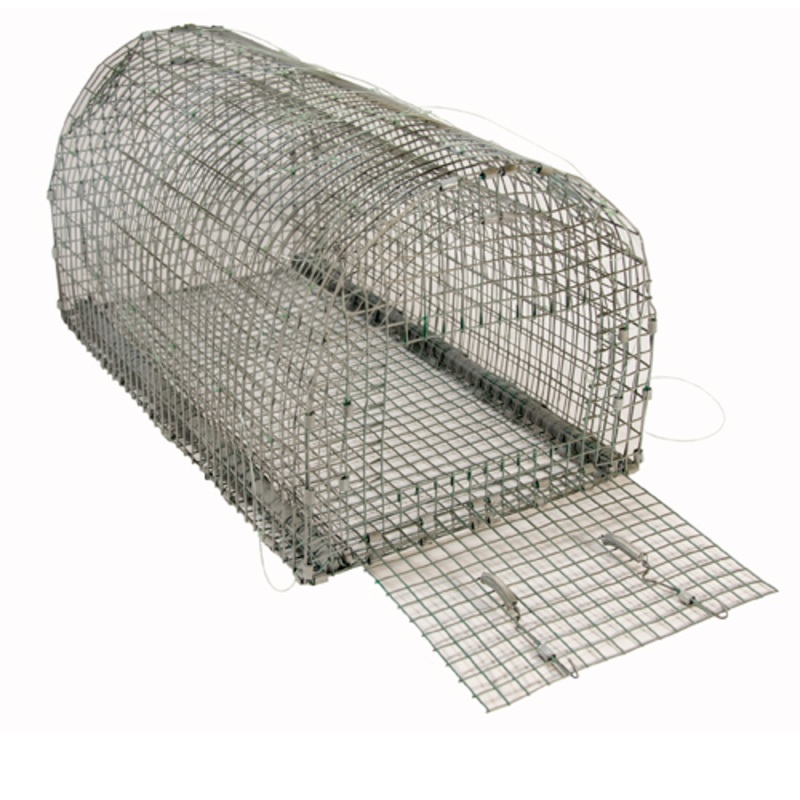 We now offer a larger size Bal Chatri trap that is excellent for trapping the largest Red tail hawks, Ferruginous hawks or Great horned owls. This new trap is longer and taller to accommodate larger bait birds or animals. We have also added a side opening
