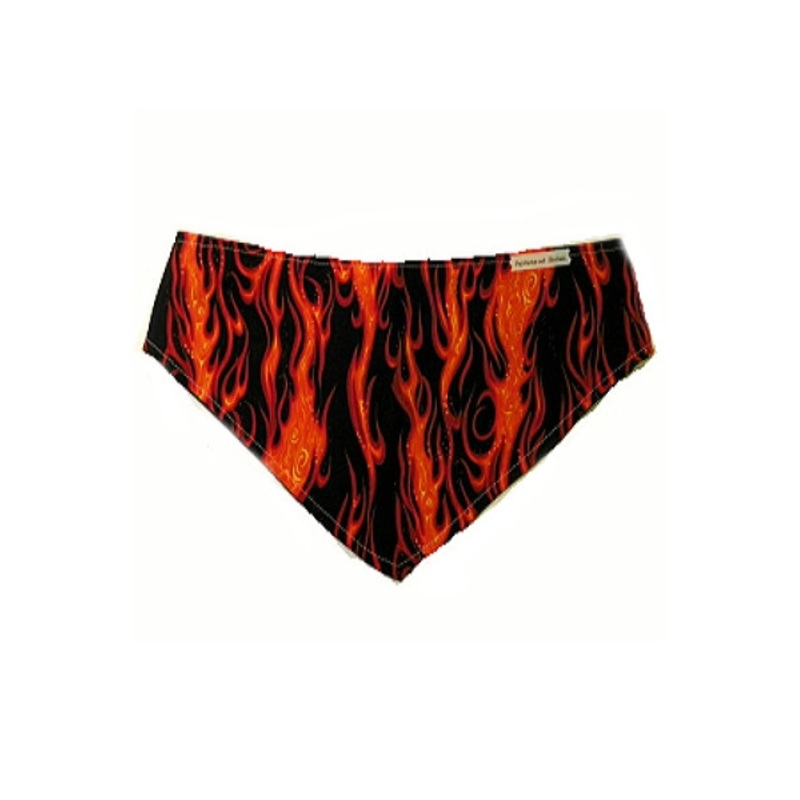 Flames Dog BandanaThe Flames Bandana, a great addition to any biker outfit. Adds character to any doggie tee or outfit. Bandana is cut with a curve so it fits on the neck comfortably like a scarf. Machine wash, hang dry. 100% cotton. Every cool dude dog ne