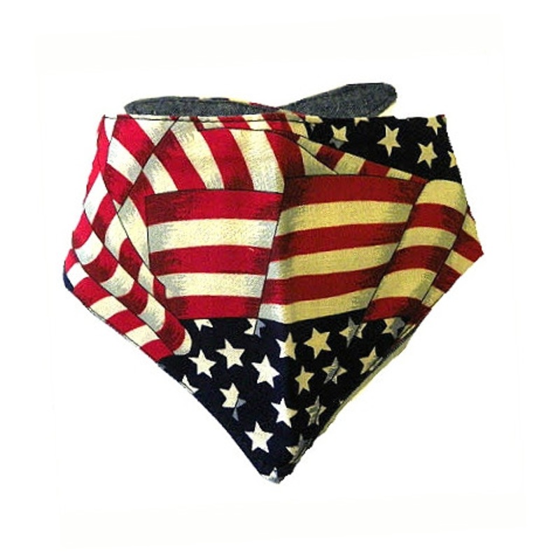 Dog Bandana - PatriotThe classic American flag print, what a great way to show your patriotism! Red, White & Blue! Adds character to any doggie tee or outfit. Bandana is cut with a curve so it fits on the neck comfortably, just ties like a scarf. Machine w