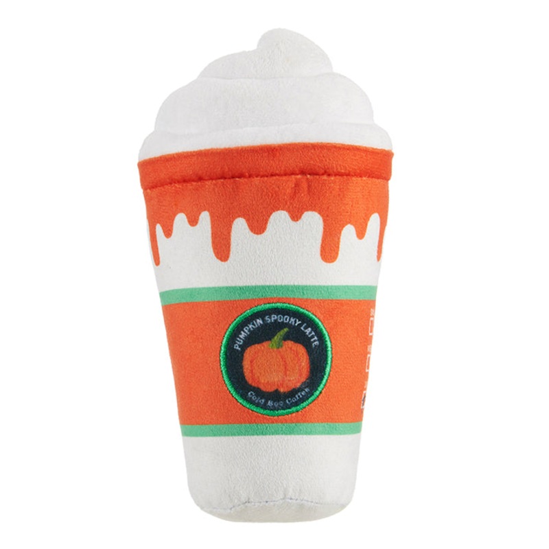 This coffee drink dog toy is just what your pup ordered. This seasonal cold boo is packed with fluff, crazy crinkle, and a deep squeaker for dogs on the go. Sorry, no substitutions. Snap a pic of your furry influencer with their Pumpkin Spooks Latte to giv