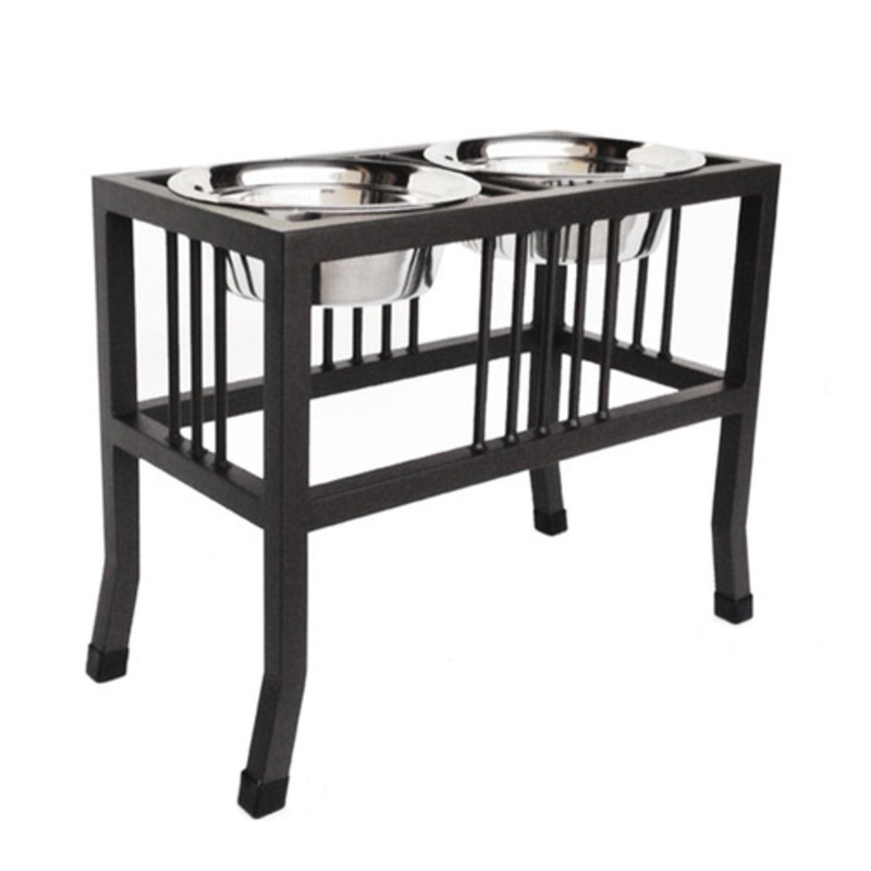 TheBaronDouble Dog Dineris the reigning favorite of discerning dog owners. This heavy-duty raised dog bowl stand features wrought iron mission bars and a subtle curvature of its legs, making it at home in both contemporary and traditional settings. TheBaro