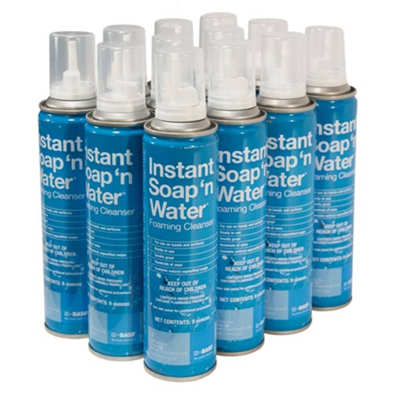 Instant Soap n Wateris a foaming cleanser made of natural saponified soaps. It's a great smelling, ready-to-use, multi-purpose soap that can be used as a hand or surface cleaner. It has hundreds of uses!ONE DOZEN CANSProduct Safety Data SheetProduct LabelB